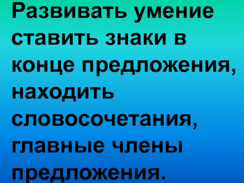Слайд 3Развивать умение ставить знаки в конце предложения, находить словосочетания, главные члены
