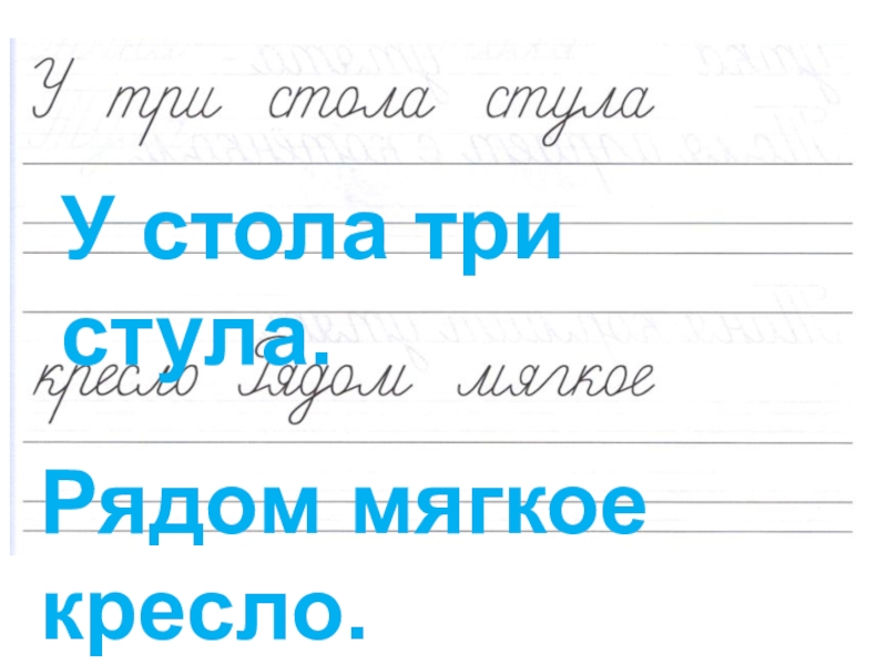 Слайд 16У стола три стула.