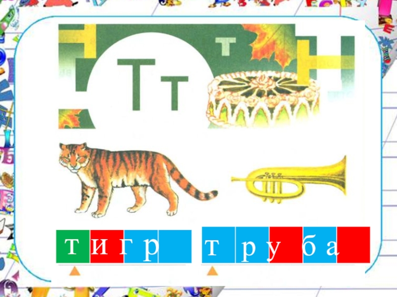 Презентация, доклад по русскому языку и литературному чтению на тему Знакомство с буквой Т.т. Звуковой анализ слов тигр, труба (обучение грамоте)