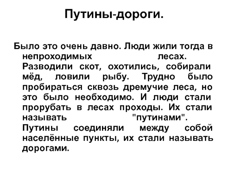 Путины соединяли между собой населённые пункты, их стали называть дорогами.