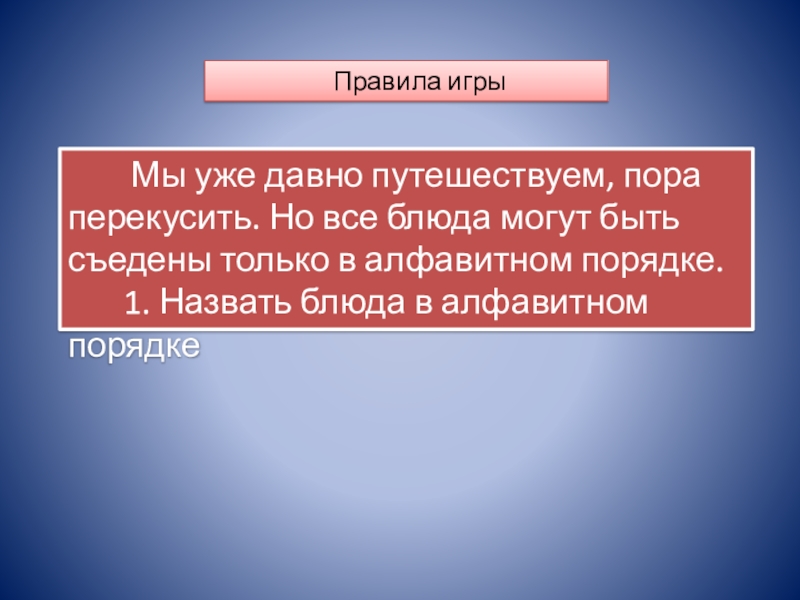 Мы уже давно путешествуем, пора перекусить. Но все блюда могут быть съедены только в алфавитном порядке.