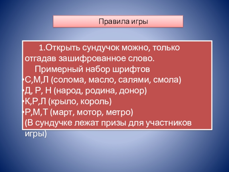 1.Открыть сундучок можно, только отгадав зашифрованное слово.