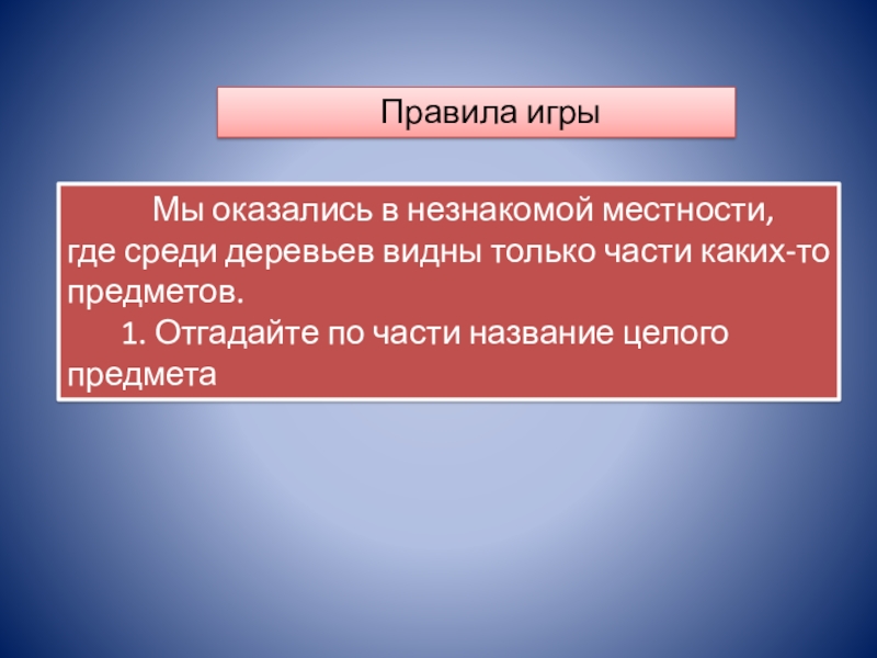 Мы оказались в незнакомой местности, где среди деревьев видны только части каких-то предметов.