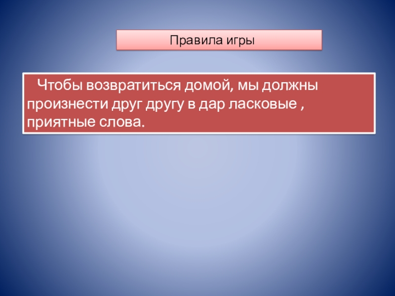 Чтобы возвратиться домой, мы должны произнести друг другу в дар ласковые , приятные слова.