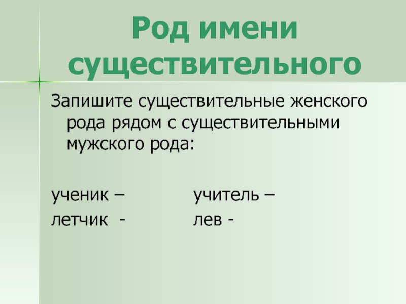 Запишите существительные женского рода рядом с существительными мужского рода: