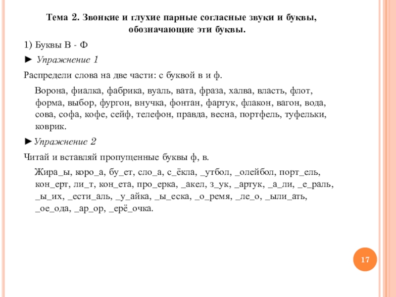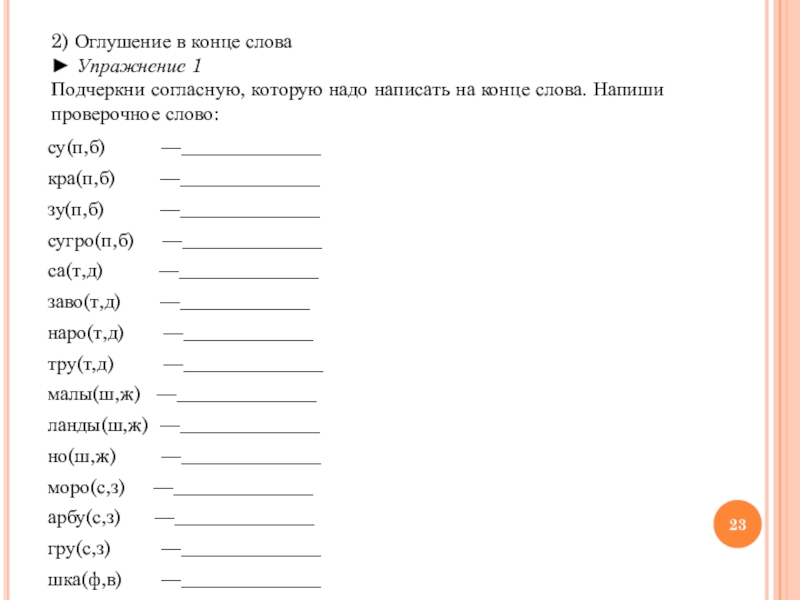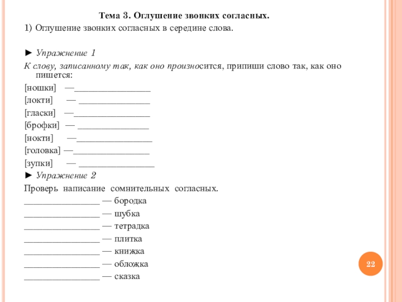 Слайд 22Тема 3. Оглушение звонких согласных.