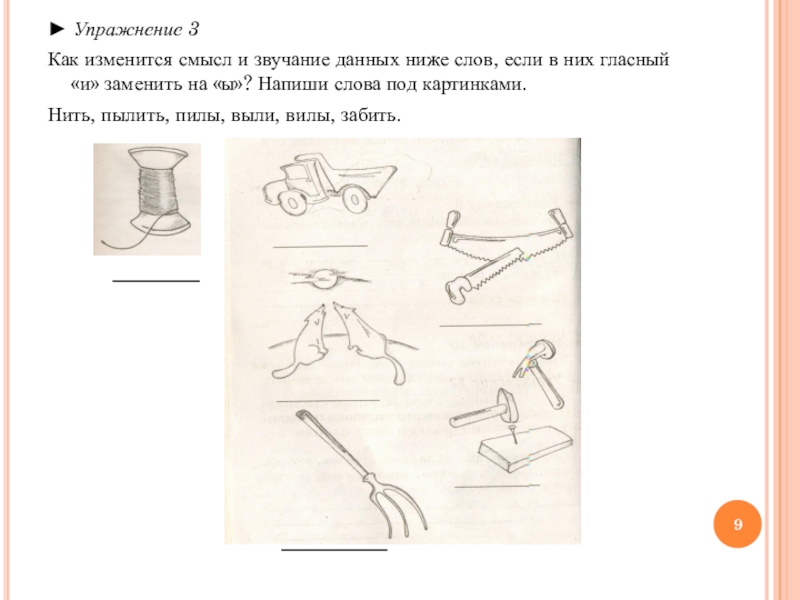 в них гласный «и» заменить на «ы»? Напиши слова под картинками.