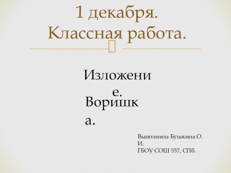 1 декабря. Классная работа.Изложение.Воришка.Выполнила Бушкина О.И.ГБОУ СОШ 557, СПб.