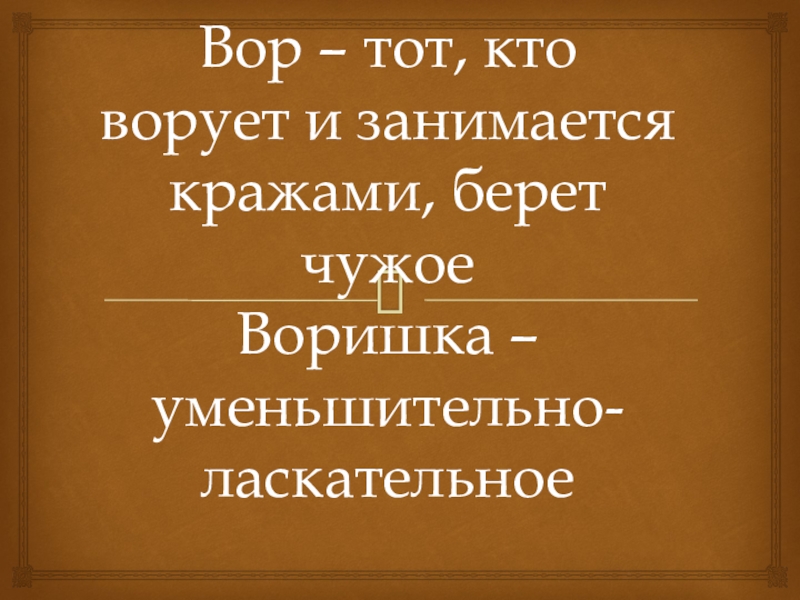Слайд 2Вор – тот, кто ворует и занимается кражами, берет чужое Воришка