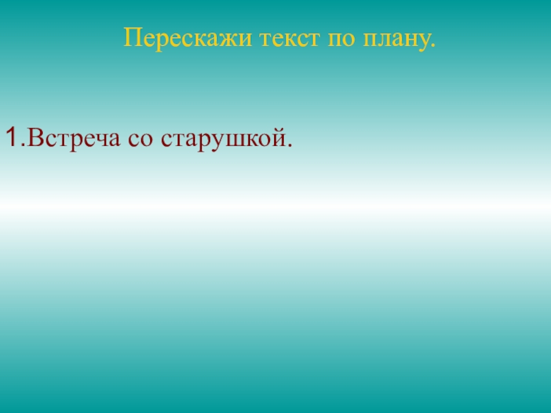 Составление планаПлан.Встреча со старушкой.Каждый поступает по-своему.Неожиданная встреча.Горькая вода.