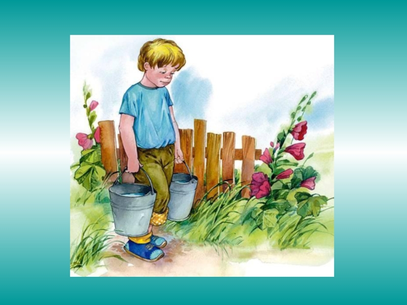 старушку с ведром воды. Бабушке было тяжело. Мальчики это заметили.