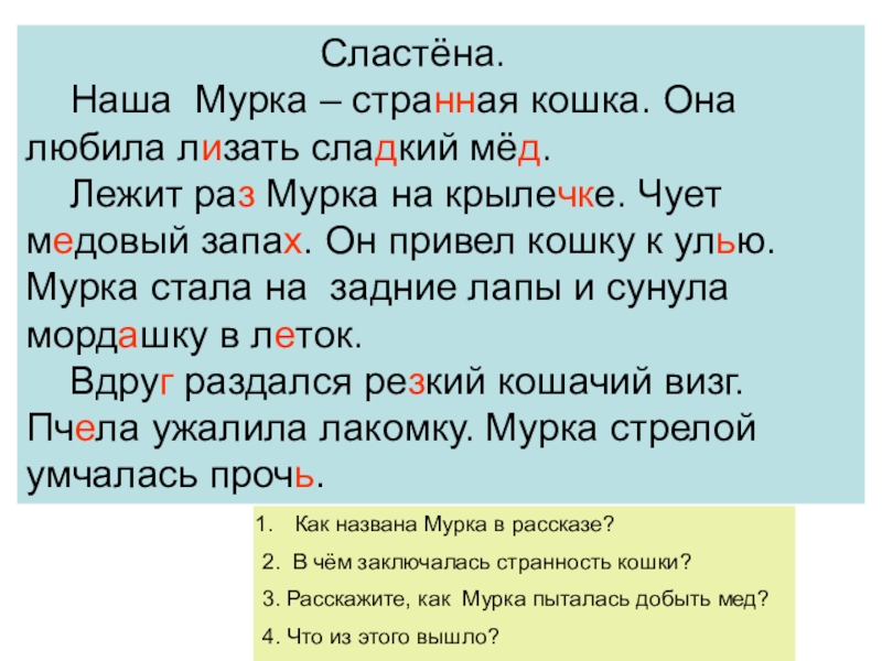 3. Расскажите, как Мурка пыталась добыть мед?