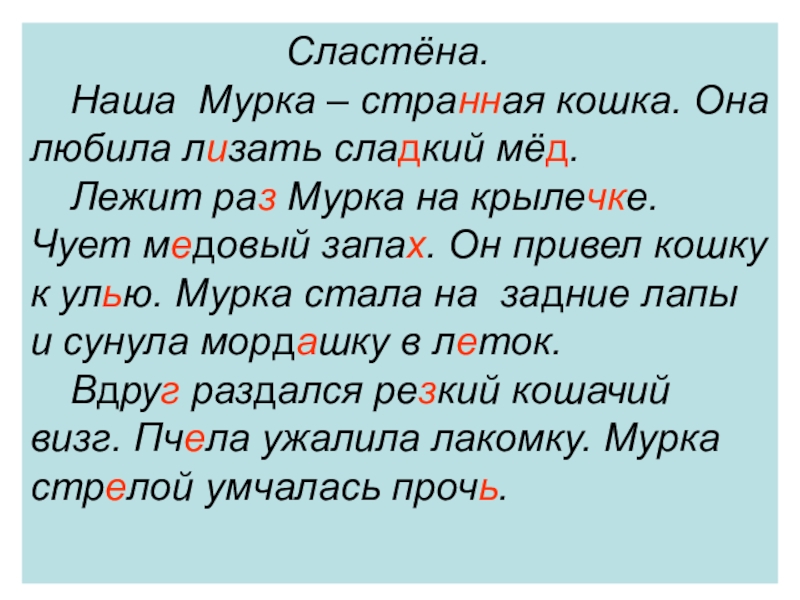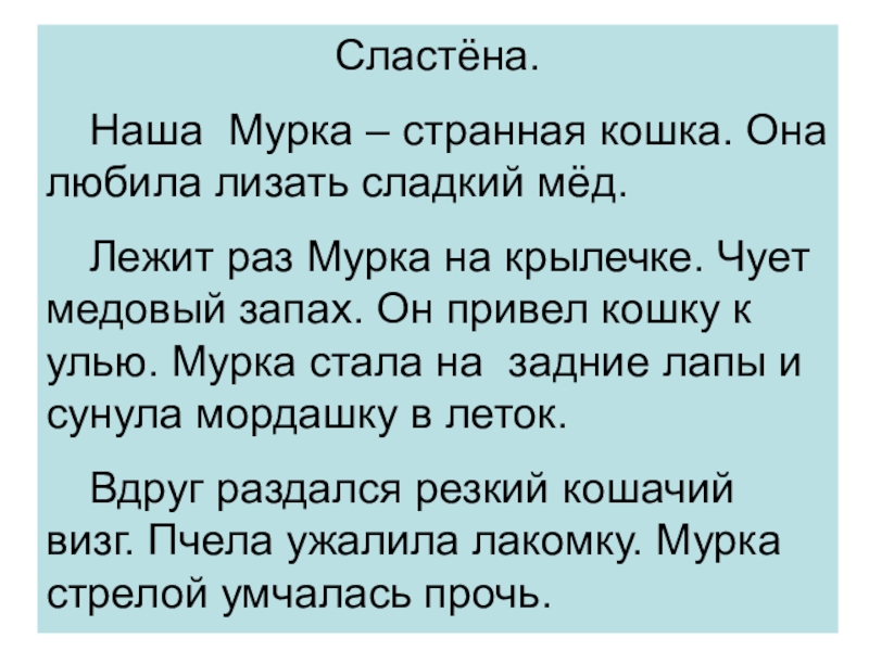 Вдруг, резкий, визг, ужалила лакомку,стрелой, умчалась, прочь;