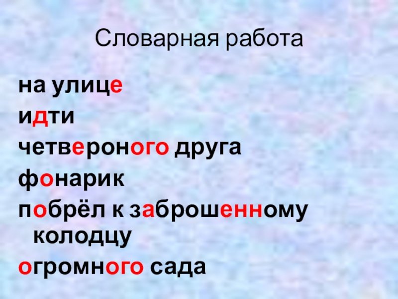 Словарная работана улице идтичетвероного другафонарикпобрёл к заброшенному колодцуогромного сада