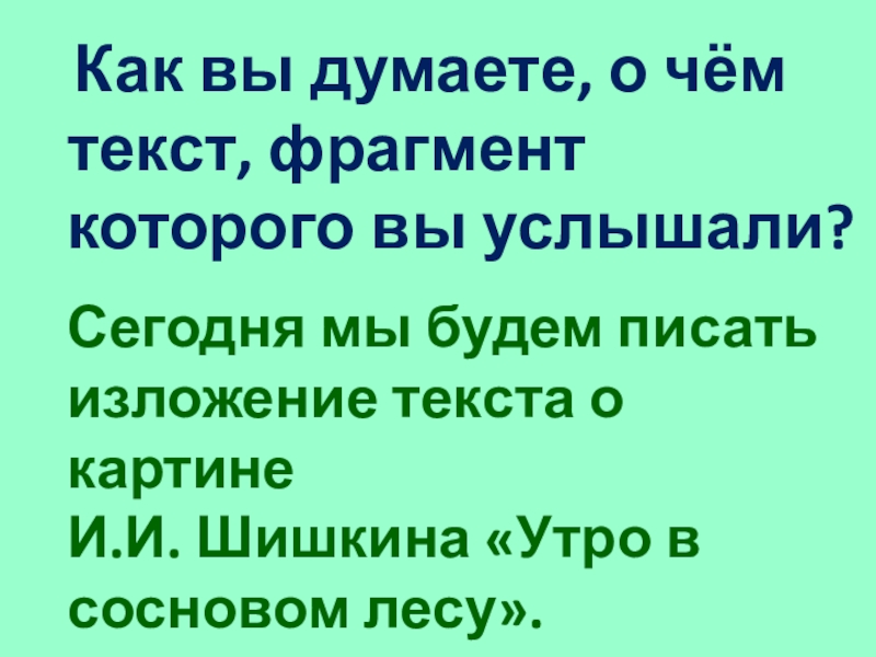 Сегодня мы будем писать изложение текста о картине