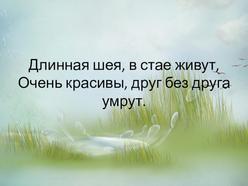 Слайд 2Длинная шея, в стае живут, Очень красивы, друг без друга умрут.