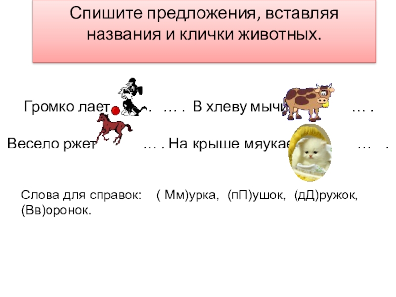Слова для справок: ( Мм)урка, (пП)ушок, (дД)ружок, (Вв)оронок.