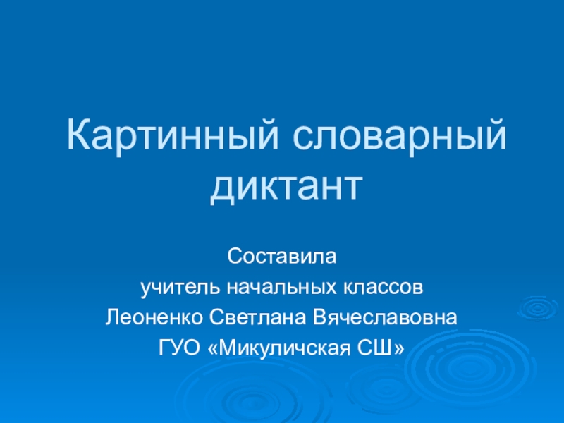 Картинный словарный диктантСоставила учитель начальных классовЛеоненко Светлана ВячеславовнаГУО «Микуличская СШ»