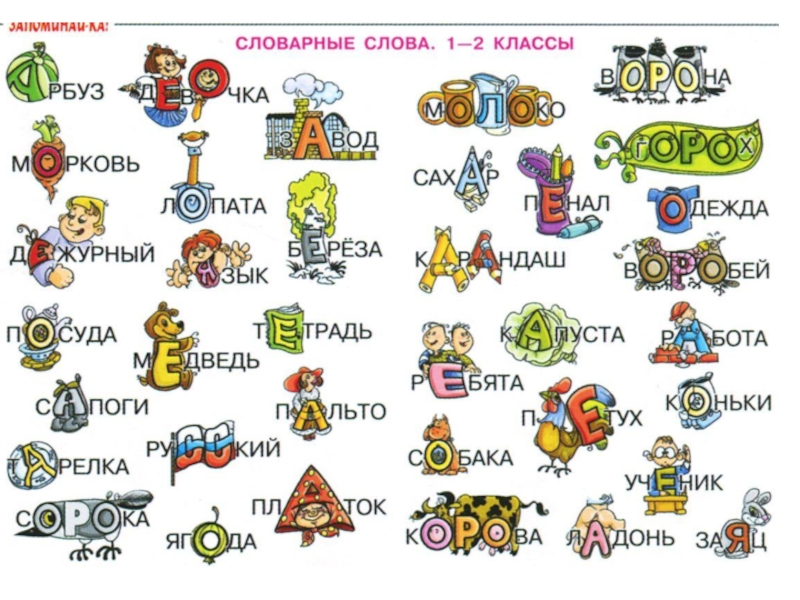 Презентация, доклад по русскому языку Карточки словарных слов - 1 класс Для изучения и тренировки