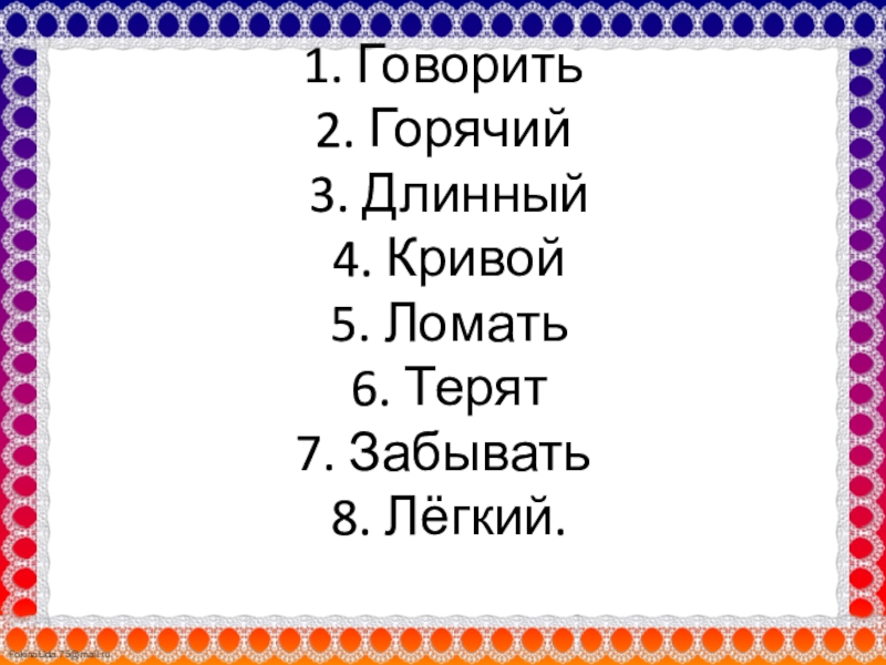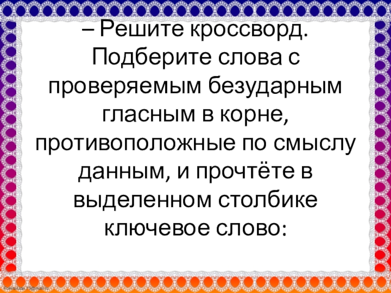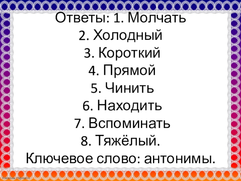 противоположные по смыслу данным, и прочтёте в выделенном столбике ключевое слово:
