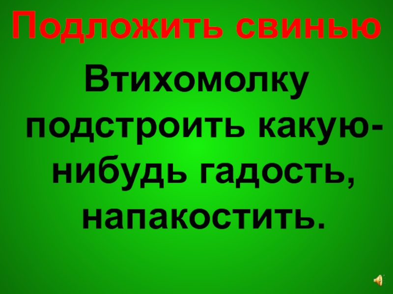 Втихомолку подстроить какую-нибудь гадость, напакостить.