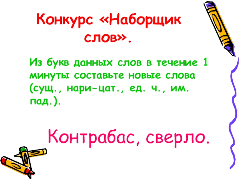 минуты составьте новые слова (сущ., нари-цат., ед. ч., им. пад.).