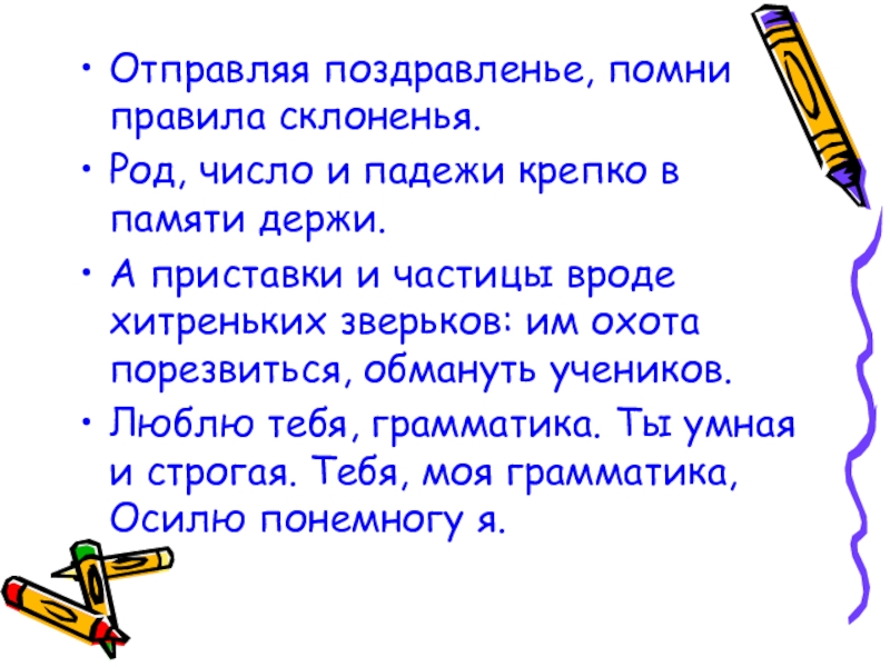 Слайд 24Отправляя поздравленье, помни правила склоненья.