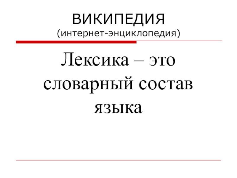 ВИКИПЕДИЯ (интернет-энциклопедия)Лексика – это словарный состав языка