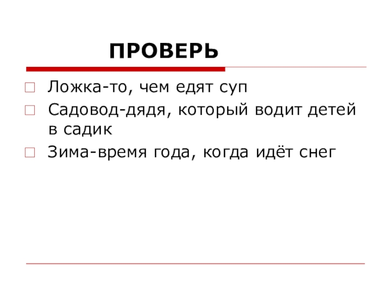 ПРОВЕРЬЛожка-то, чем едят супСадовод-дядя, который водит детей в садикЗима-время года, когда