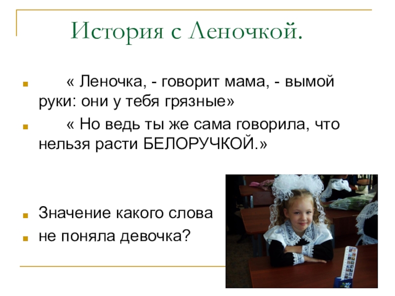 « Но ведь ты же сама говорила, что нельзя расти БЕЛОРУЧКОЙ.»