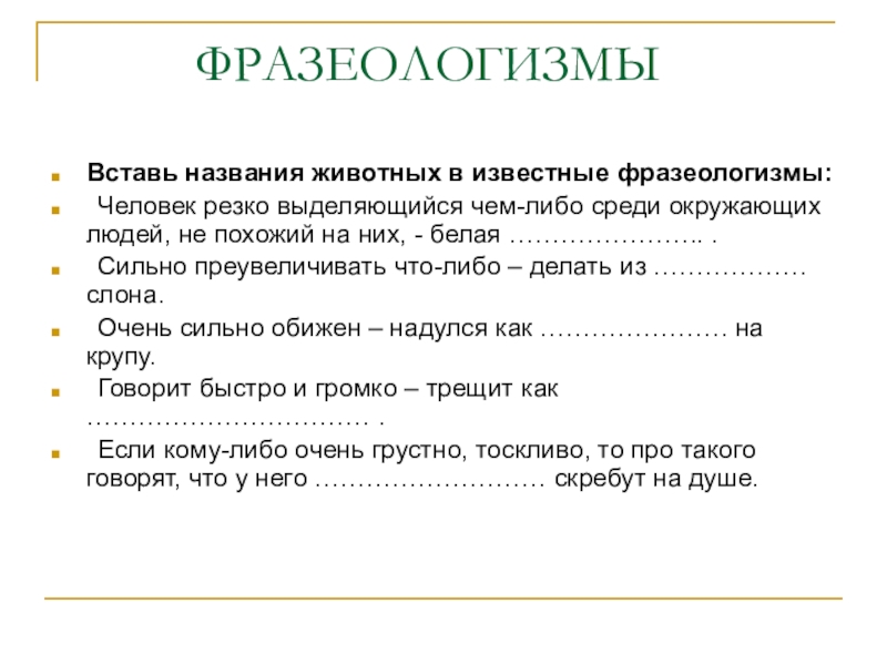 Слайд 10 ФРАЗЕОЛОГИЗМЫ