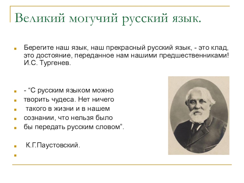 это клад, это достояние, переданное нам нашими предшественниками! И.С. Тургенев.