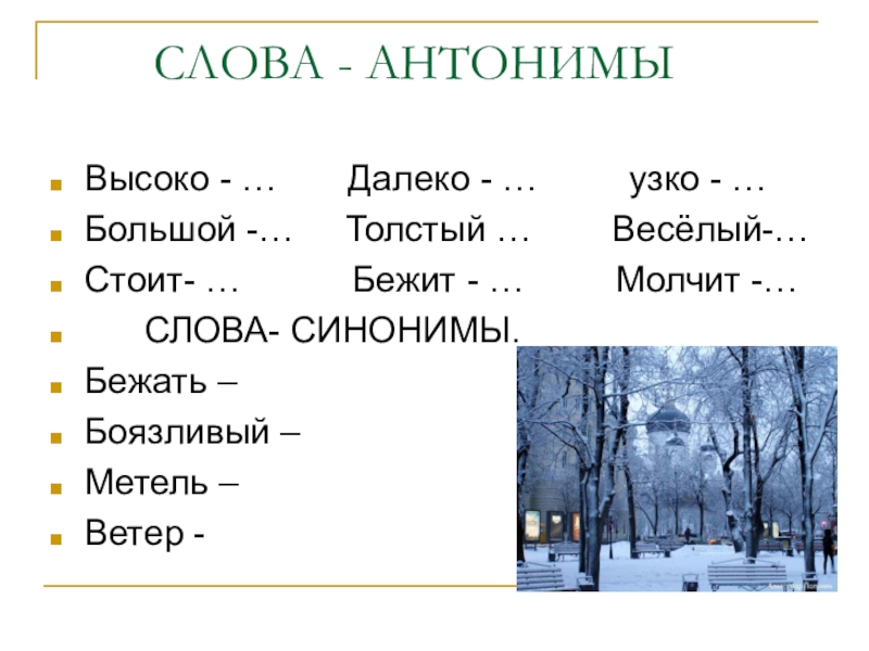 Слайд 9 СЛОВА - АНТОНИМЫ