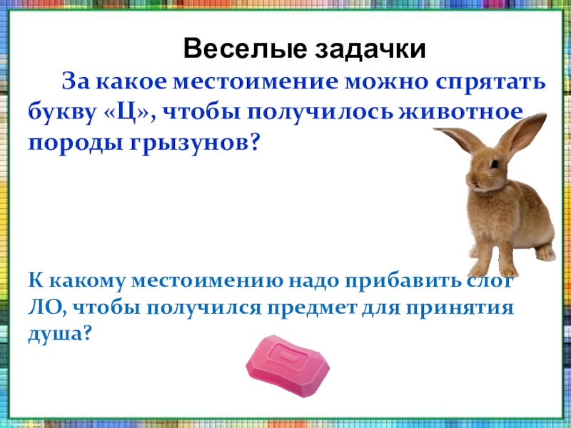 К какому местоимению надо прибавить слог ЛО, чтобы получился предмет для принятия душа?