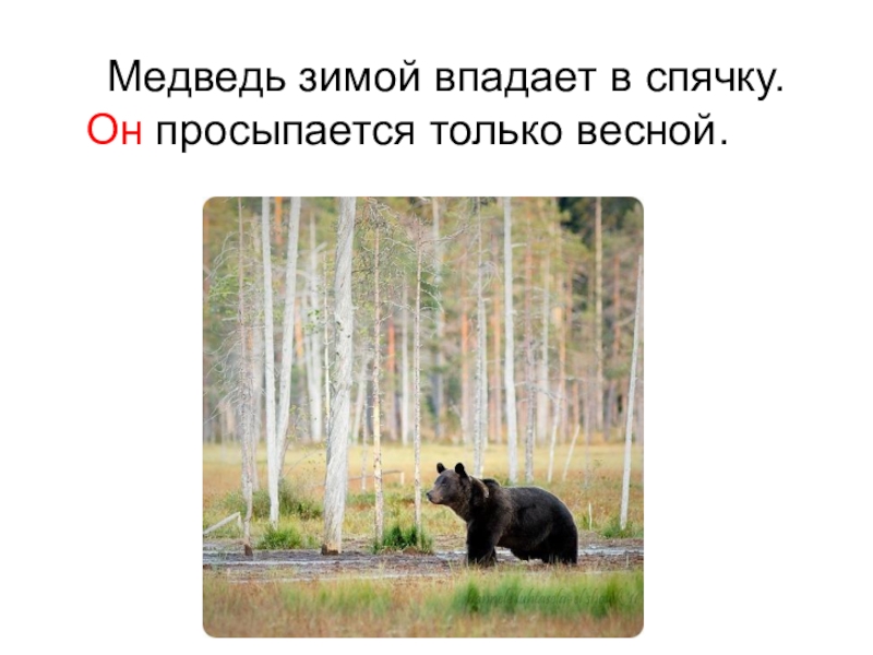 Слайд 6 Медведь зимой впадает в спячку. Он просыпается только