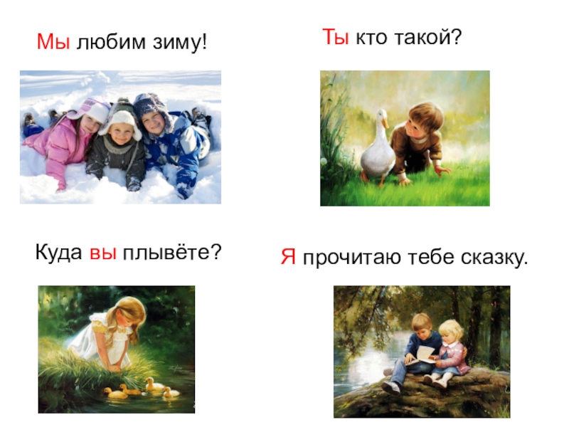 Мы любим зиму!Ты кто такой?Куда вы плывёте?Я прочитаю тебе сказку.