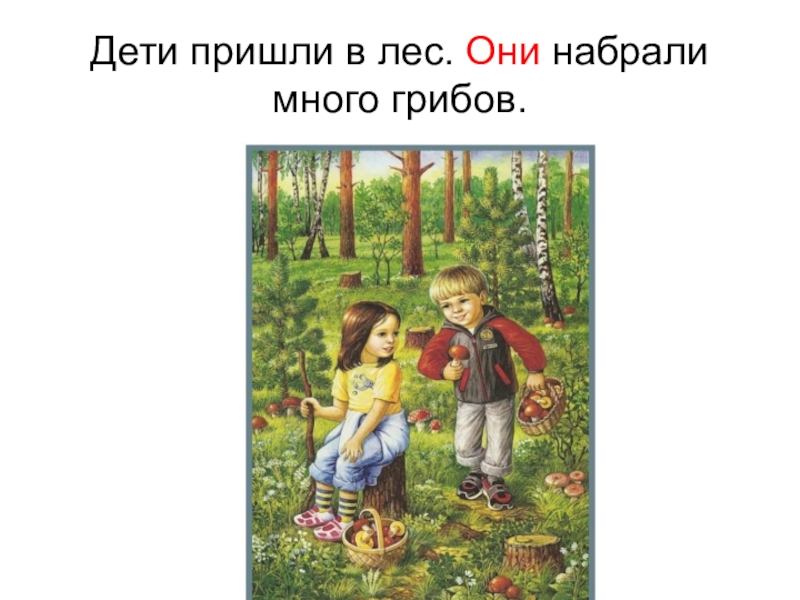 Слайд 8Дети пришли в лес. Они набрали много грибов.