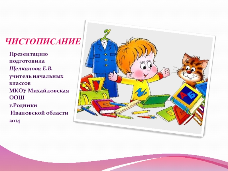 ЧИСТОПИСАНИЕПрезентацию подготовила Щелканова Е.В.учитель начальных классов МКОУ Михайловская ООШг.Родники Ивановской области2014