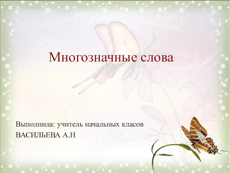 Многозначные словаВыполнила: учитель начальных класовВАСИЛЬЕВА А.Н