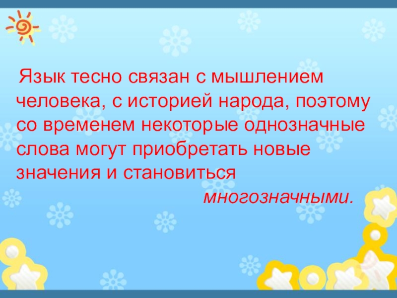 Язык тесно связан с мышлением человека, с историей народа, поэтому со временем некоторые однозначные слова могут