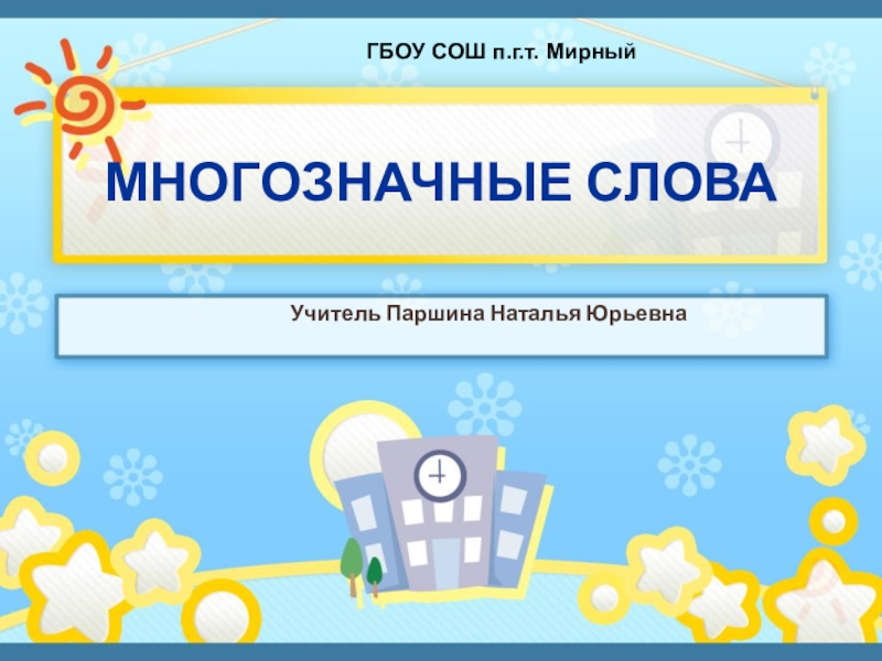 МНОГОЗНАЧНЫЕ СЛОВА  Учитель Паршина Наталья Юрьевна ГБОУ СОШ п.г.т. Мирный