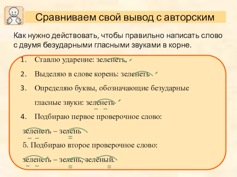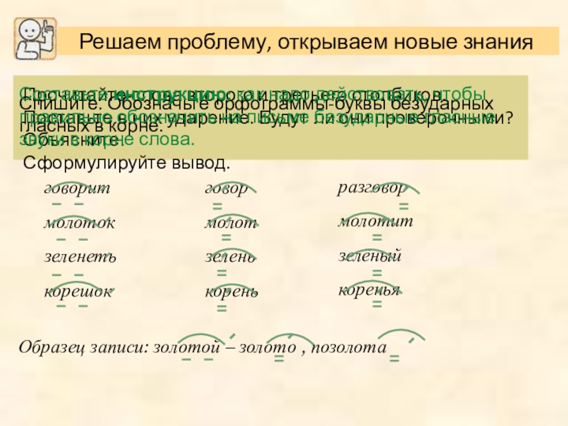 Составьте инструкцию: как надо действовать, чтобы правильно обозначить на письме безударные гласные звуки в корне слова.