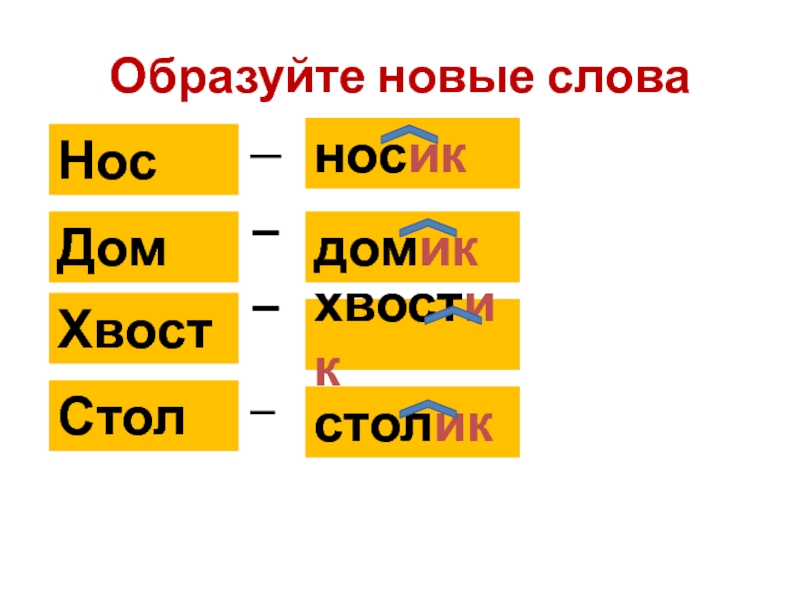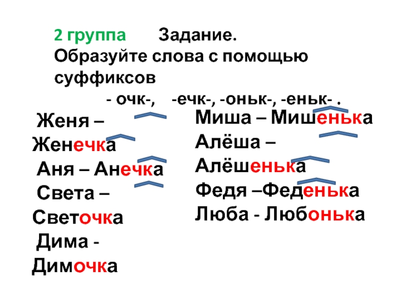 Образуйте слова с помощью суффиксов - очк-, -ечк-, -оньк-, -еньк- .
