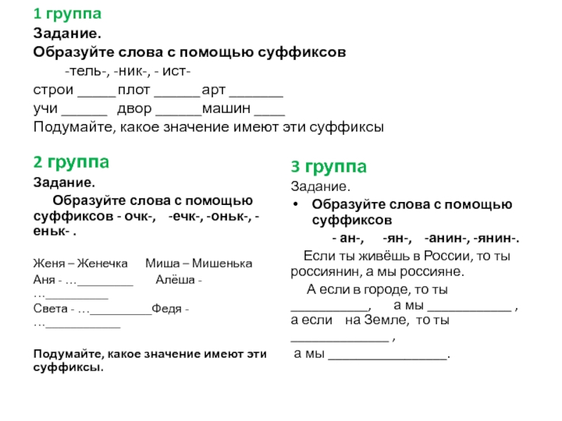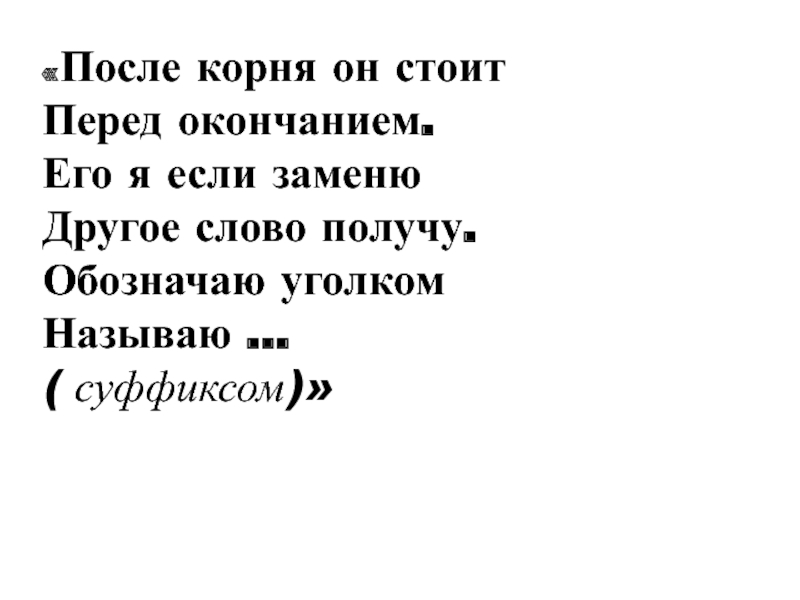 СУФФИКС – это значимая часть слова, которая стоит после корня, служит для образования новых слов.