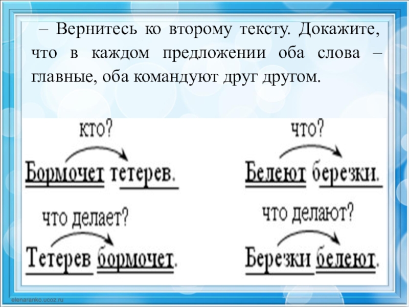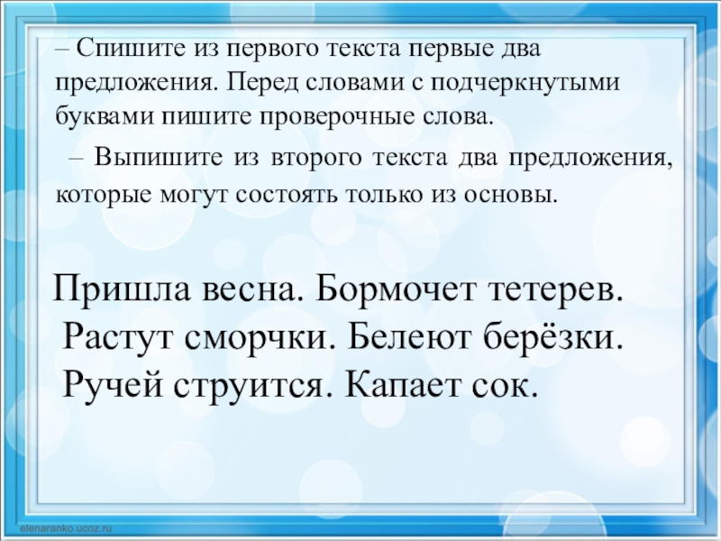 – Выпишите из второго текста два предложения, которые могут состоять только из основы.