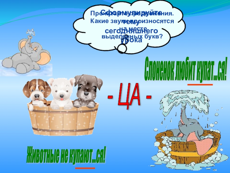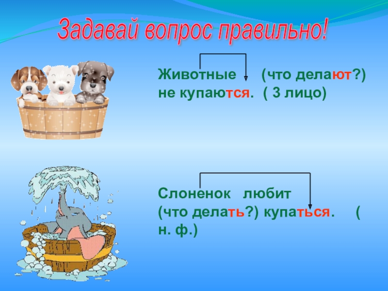 Слоненок любит (что делать?) купаться. ( н. ф.)