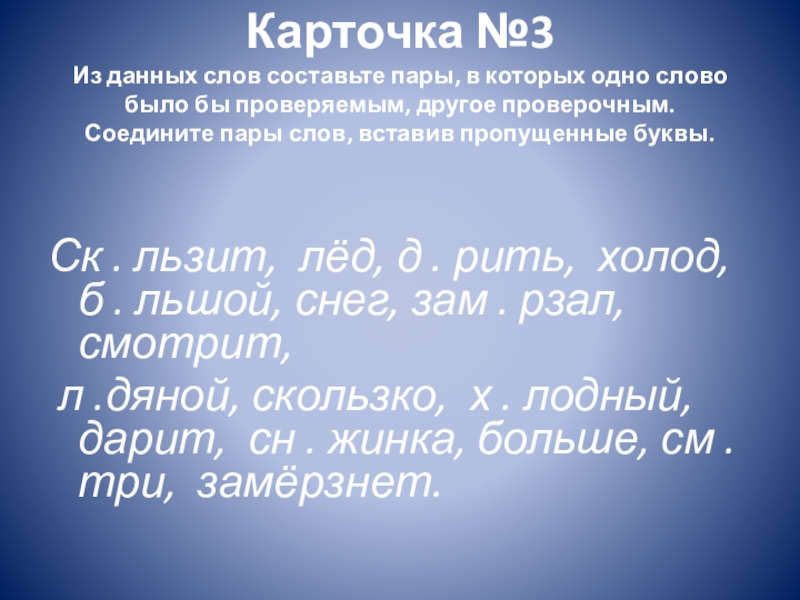 л .дяной, скользко, х . лодный, дарит, сн . жинка, больше, см . три, замёрзнет.