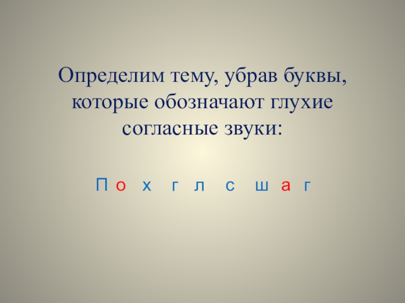 Слайд 1Определим тему, убрав буквы, которые обозначают глухие согласные звуки: