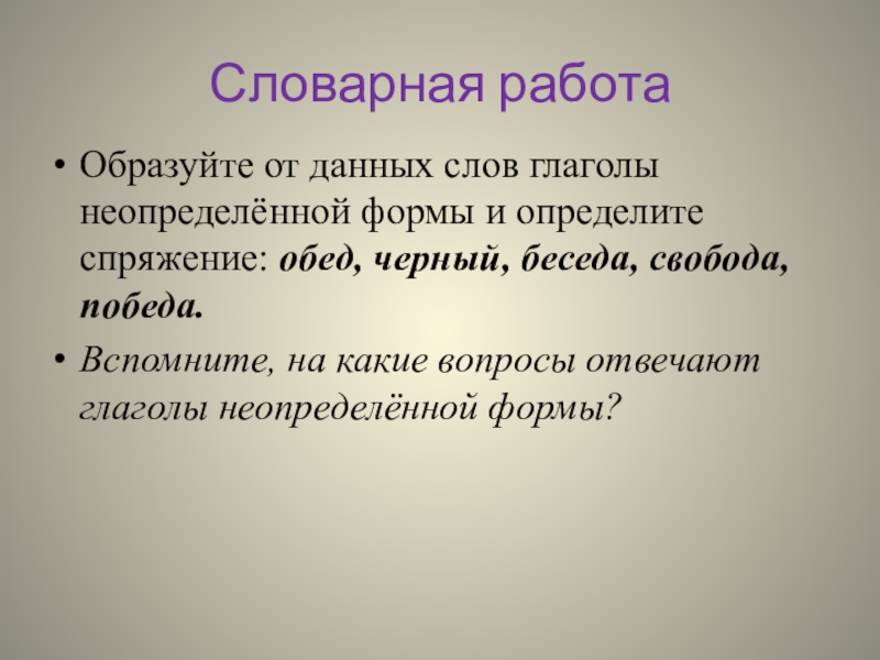 Вспомните, на какие вопросы отвечают глаголы неопределённой формы?