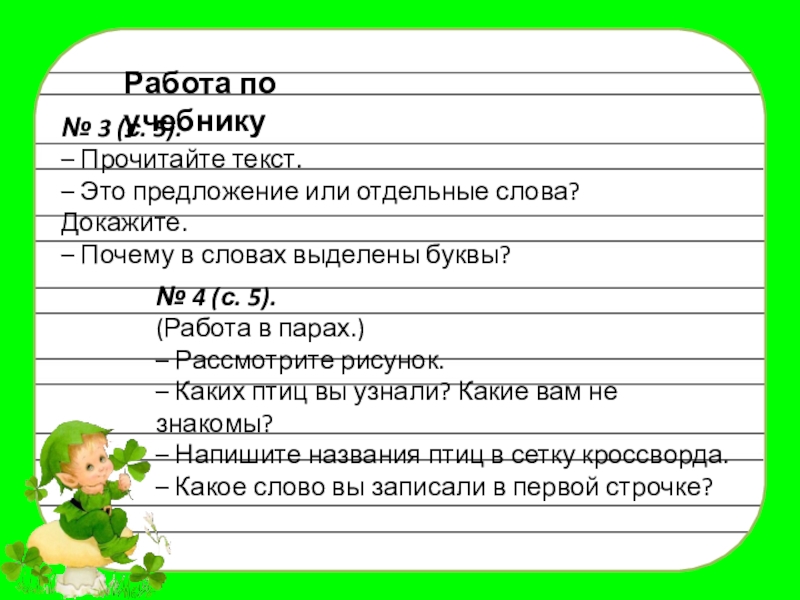 – Каких птиц вы узнали? Какие вам не знакомы?